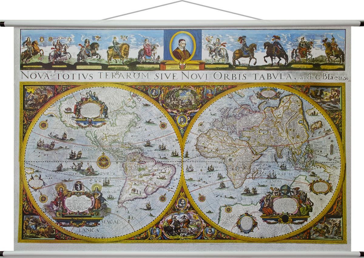 Blaeu Antique World Map - mapa ścienna renomowanego wydawnictwa Global Mapping, przedstawiająca reprint XVII wiecznej mapy świata. Prawdziwe dzieło sztuki z niesamowitą kartografią. Będzie idealną ozdobą każdego salonu, biura, biblioteki.Mapa oprawiona jest w rurki PCV, laminowana dwustronnie, …
