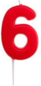 Świeczka na tort cyferka "6" - wysokość cyferki ok. 5,5 cm. Kolor czerwony.