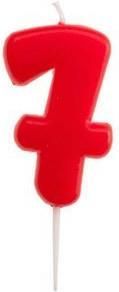 Świeczka na tort cyferka "7" - wysokość cyferki ok. 5,5 cm. Kolor czerwony.