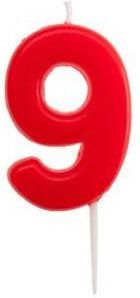 Świeczka na tort cyferka "9" - wysokość cyferki ok. 5,5 cm. Kolor czerwony.