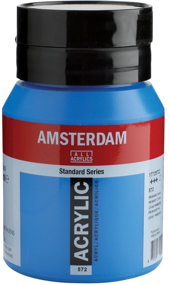 Talens Amsterdam farba akryl 500ml 572 primary cy Talens Amsterdam All Acrylics Standard Acrylic Paints farba akrylowa wysoka odporność na światło; farby zawdzięczają zastosowaniu czystych, nie blaknących pigmentów wyjątkowa trwałość(środek wiążący składa się w 100% z żywicy akrylowej) odporne na …