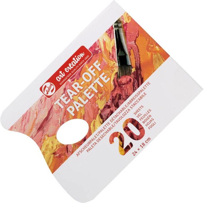 Talens Tear Off Palette Paleta ze zrywanymi warstwami specjalnego, gładkiego papieru, pozwalającego na mieszanie kolorów idealna do farb olejnych, akrylowych, akwareli i gwaszy wielkość: 24x18 cm ilośc kartek: 20 szt produkt holenderskiej firmy Talens