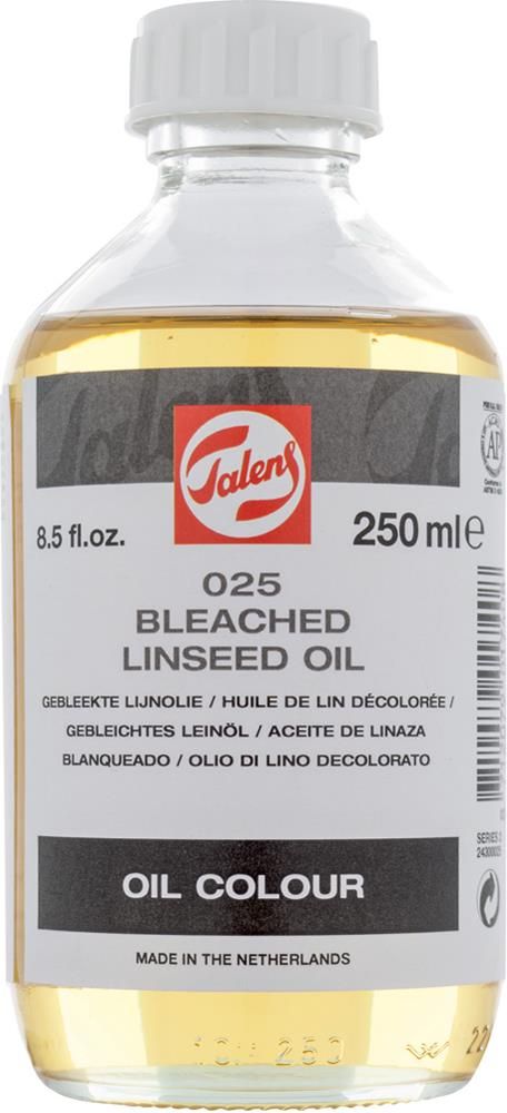 Talens Bleached Linseed Oil olej lniany bielony przeznaczony dla artystów, którzy pragną wytworzyć swoją własną farbę olejną bądź medium malarskie zwiększa połysk i wydłuża czas schnięcia farby, zwiększa ryzyko powstawania nierówności w porównaniu do oczyszczonego oleju lnianego mniej żółknie przy przetrzymywaniu w warunkach zaciemnionych może być łączony z białym spirytusem lub terpentyną pojemność: 250ml opakowanie: zakręcana butelka produkt holenderskiej firmy Talens