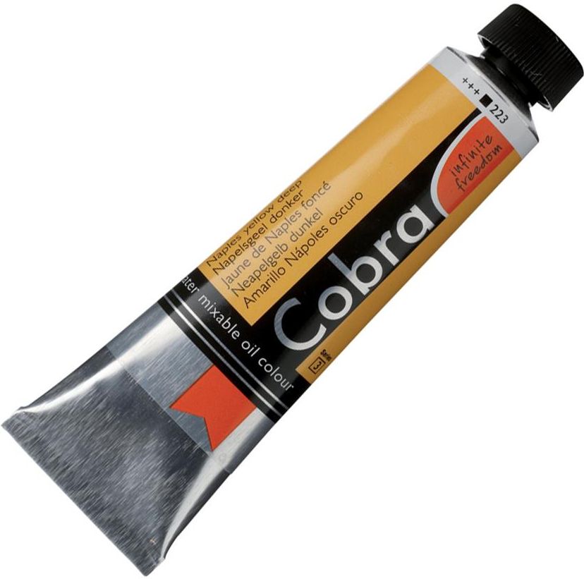 Talens Cobra Artist Water farba olej 40ml 223 Na Talens Cobra Artist Water farba olejna wykorzystanie pigmentów wysokiej jakości niski współczynnik parowania farby sprawdzają się w różnorodnych technikach malarskich i dekoracyjnych (nakładanie pędzlem, gąbką, wałkiem, nożem) odporne na światło; cechuje wysoka odporność na blaknięcie wyjątkowa trwałość, gwarancja ponad 100 lat niezmienności barw w warunkach muzealnych znaczna gęstość ułatwia tworzenie przestrzennych form i grubych warstw można rozcieńczać zwykłą wodą Pojemność tubki: 40ml kolor: naples yellow deep 223 produkt holenderskiej firmy Talens