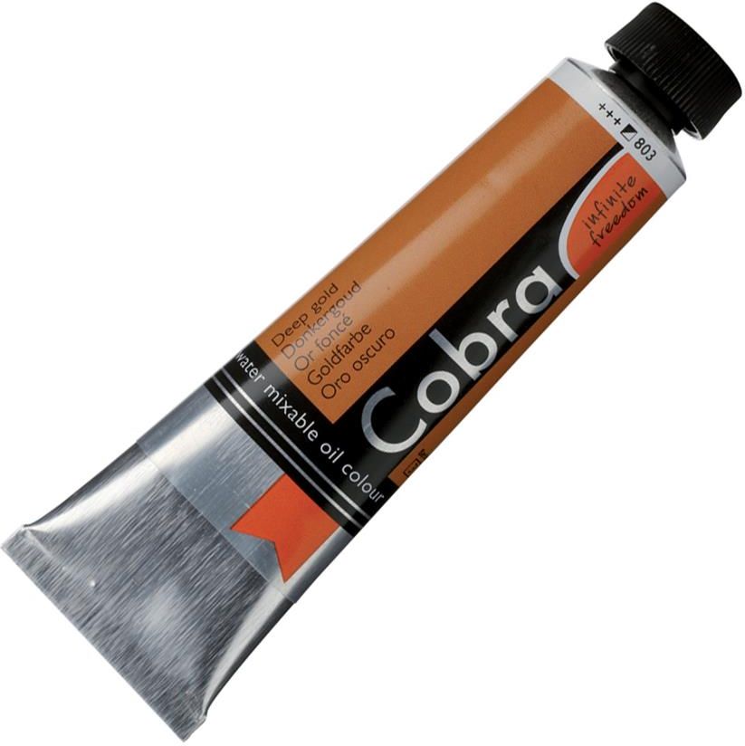 Talens Cobra Artist Water farba olejna 40ml 803 Talens farba olejna Cobra Artist Water wykorzystanie pigmentów wysokiej jakości niski współczynnik parowania farby sprawdzają się w różnorodnych technikach malarskich i dekoracyjnych (nakładanie pędzlem, gąbką, wałkiem, nożem) odporne na światło; cechuje wysoka odporność na blaknięcie wyjątkowa trwałość, gwarancja ponad 100 lat niezmienności barw w warunkach muzealnych znaczna gęstość ułatwia tworzenie przestrzennych form i grubych warstw można rozcieńczać zwykłą wodą Pojemność tubki: 40ml kolor: deep gold 803 produkt holenderskiej firmy Talens