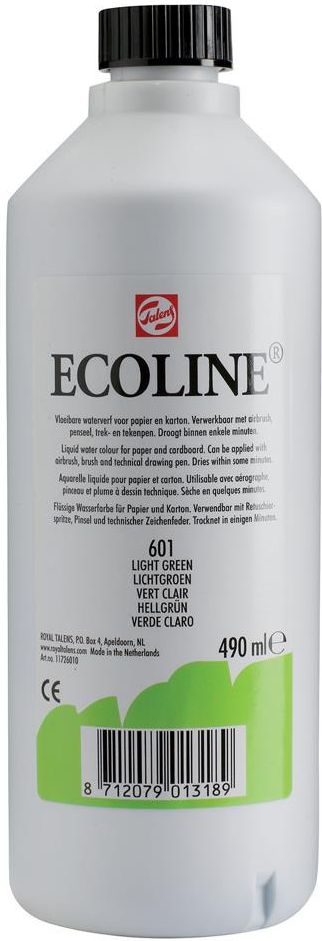 Talens Ecoline skoncentrowana farba akwarelowa w stanie płynnym odznacza się wspaniałą przyswajalnością do papieru akwarelowego, rysunkowego lub tektury Ecoline to wszechstronność w użyciu w połączeniu z różnego rodzaju materiałami; doskonale nadaje się do prac projektowych, do lawowania prace powinny być przechowywane z dala od światła aby zapobiec utracie kolorów doskonale sprawdza się w malarstwie akwarelowym, ale także w rysunku architektonicznym, i wszelkich technikach hobby znakomicie nadaje się do znakowania i pieczętowania opakowanie: butelka pojemność: 490 ml kolor(nr/barwa): 601 light green produkt holenderskiej firmy Talens