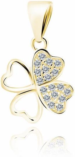 Delikatna wykonana z pozłacanego srebra zawieszka o kształcie koniczynki, wysadzana białymi cyrkoniami, model Z1852CG_W.