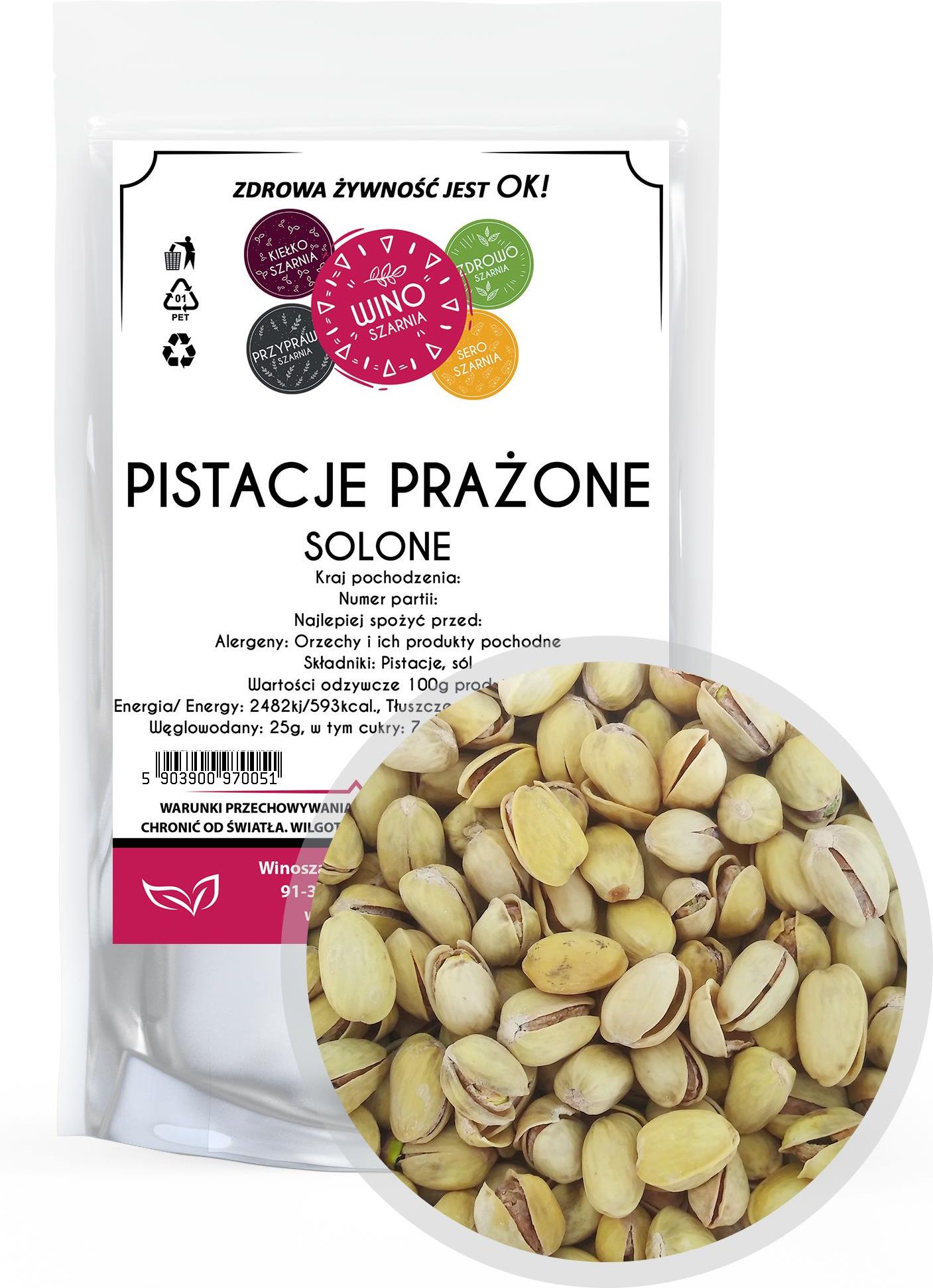 Winoszarnia Pistacje prażone solone całe orzechy 500g Bełchatów