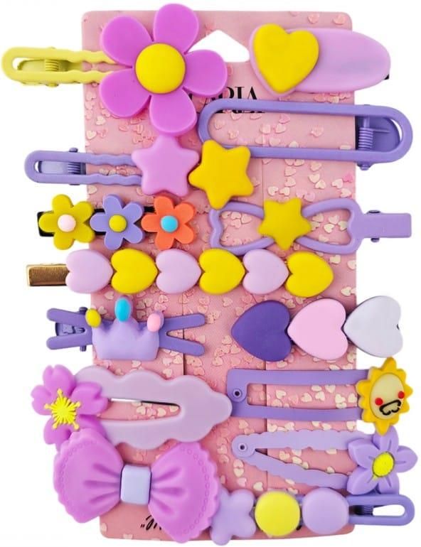 Ecarla Zestaw Pakiet 14W1 Spinek Wsuwek Do Włosów Kwiatki Kokardka Fiolet SP412 Bełżyce