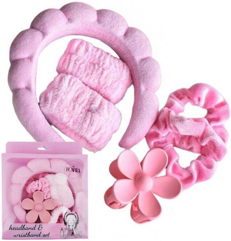Ecarla Zestaw Spa Opaska Na Głowę + Gumki Nadgarstki 2X Frotki Do Włosów Ozdobna Spinka W Kształcie Kwiatu Różowy (0539R) Bełżyce