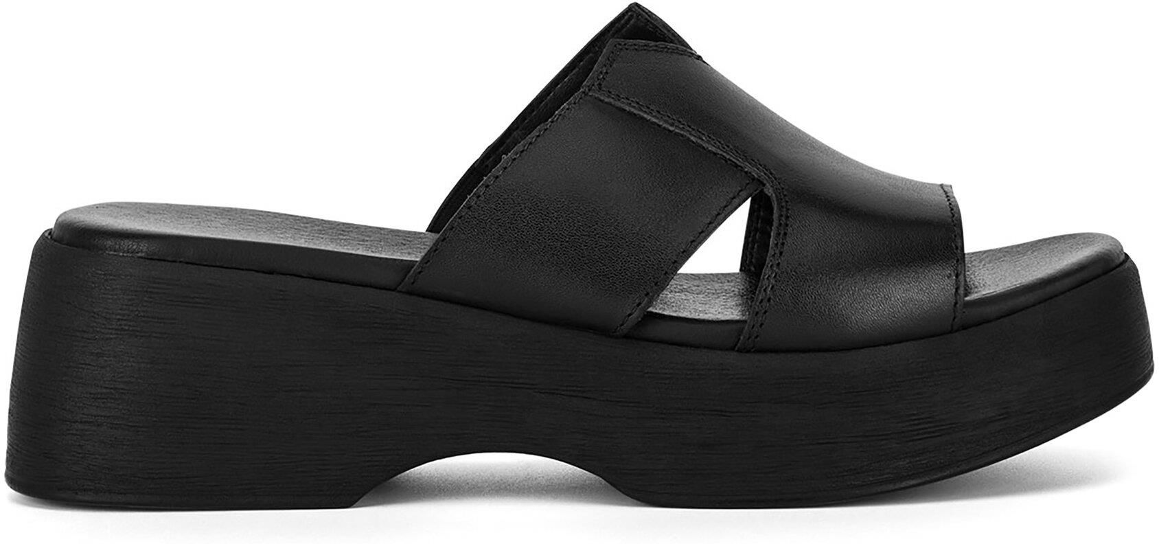 Lasocki Klapek WI23-NAGINA-01 czarny Klapki damskie Lasocki to synonim wygody i stylu w jednym. Czarny kolor oraz wykonanie ze skóry gwarantują nie tylko trwałość, ale również elegancki wygląd w każdej sytuacji. Platforma to idealne rozwiązanie dla kobiet, które cenią sobie komfort i chcą dodać sobie kilka centymetrów wzrostu, nie rezygnując przy tym z wygody. Casualowy styl pozwala na wszechstronne dopasowanie do wielu stylizacji, od luźnych jeansów po bardziej eleganckie spódnice. Klapki Lasocki to must-have tego sezonu dla każdej kobiety ceniącej modę i komfort! Produkt posiada certyfikat Leather Working Group (LWG). Leather Working Group to międzynarodowa organizacja, która stworzyła standard zarządzania środowiskiem w przemyśle skórzanym. Certyfikaty Leather Working Group (LWG) są przyznawane jedynie tym producentom skór, którzy dochowują najwyższej staranności w zakresie ochrony środowiska i wydajności w całym procesie produkcji.