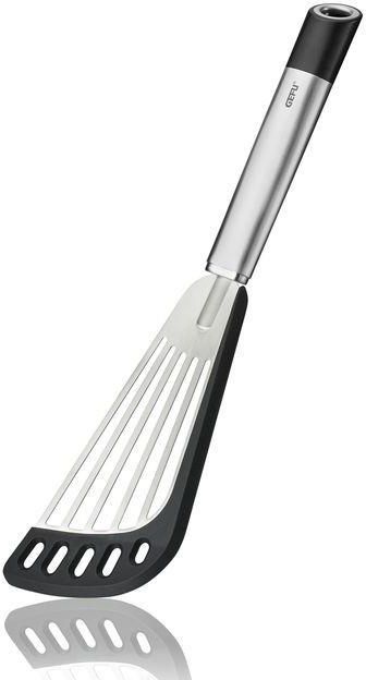 Dzięki łopatce kuchennej PRIMELINE zakończonej silikonową końcówką, nie musisz się martwić o zarysowania Twoich ulubionych naczyń kuchennych z powłoką nieprzywierającą. Łopatka o zakrzywionej formie świetnie sprawdza się podczas gotowania, a ponadto jest odporna na temperaturę do 250°C, co umożliwia bezpieczne korzystanie w każdych warunkach. Po użyciu, łatwo można ją umyć w zmywarce. To praktyczne narzędzie kuchenne, które sprawi, że gotowanie stanie się jeszcze bardziej przyjemne i wygodne. Każdy produkt z tej serii posiada specjalne oczko do zawieszenia, które wraz z dostępnymi haczykami (G-29251) umożliwia zawieszenie go na relingu kuchennym (G-29250). Cechy szczególne nieprzywierająca powierzchnia idealna do powlekanych naczyń kuchennych praktyczny, zakrzywiony kształt odporna na temperaturę do 250°C wykonana z wysokiej jakości stali nierdzewnej, silikonu i tworzywa sztucznego można myć w zmywarce Gwarancja GEFU zapewnia swoim klientom 20-letnią gwarancję na wybrane ekskluzywne produkty oznaczone znakiem "Q-20". W przypadku tych konkretnych produktów GEFU gwarantuje, że są one wolne od wad materiałowych, produkcyjnych i konstrukcyjnych. Wymiary Długość: 31 cm Szerokość: 8 cm Wysokość: 2 cm Masa: 0.14 kg