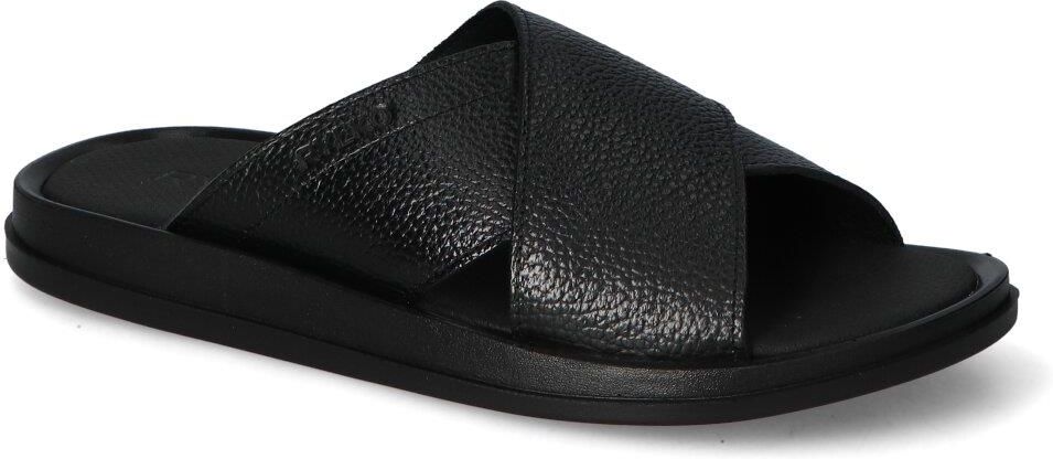 Eleganckie klapki męskie renomowanej marki Ryłko: - cholewka wykonana w całości z wysokiej klasy skóry naturalnej licowej - wnętrze wykonane zostało ze skóry naturalnej, aby zapewnić wygodę - wygodna skórzana wkładka wewnętrzna zapewnia komfort użytkowania - podeszwa o grubości 2,5 cm zapewnia odpowiednią stabilizację i nadaje elegancji - klasyczny czarny kolor oraz modny fason zachwyci każdego!