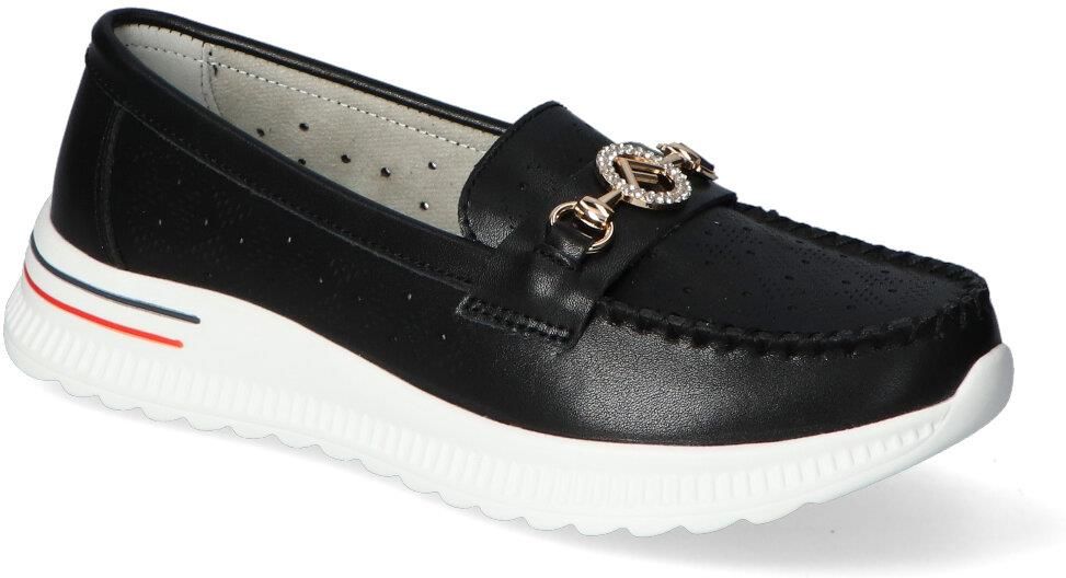 Półbuty For-but to połączenie elegancji i wygody, które z pewnością spełnią oczekiwania nawet najbardziej wymagających użytkowników. Wykonane z wysokiej jakości skóry naturalnej, te czarne półbuty charakteryzują się subtelnym, ale stylowym designem, który doskonale sprawdzi się zarówno w codziennych, jak i bardziej formalnych stylizacjach.Dzięki zastosowaniu miękkiej skóry, obuwie zapewnia komfort noszenia przez cały dzień. Klasyczny krój z ozdobnym detalem w postaci biżuteryjnego akcentu dodaje im wyjątkowego charakteru. Półbuty posiadają również elastyczną podeszwę, która zapewnia doskonałą amortyzację oraz przyczepność na różnych nawierzchniach.Półbuty For-but doskonale komponują się z eleganckimi spodniami, sukienkami czy spódnicami, co czyni je uniwersalnym elementem każdej garderoby. Wybierając te półbuty, inwestujesz w jakość, styl i wygodę, które sprawią, że każda okazja stanie się jeszcze bardziej wyjątkowa.