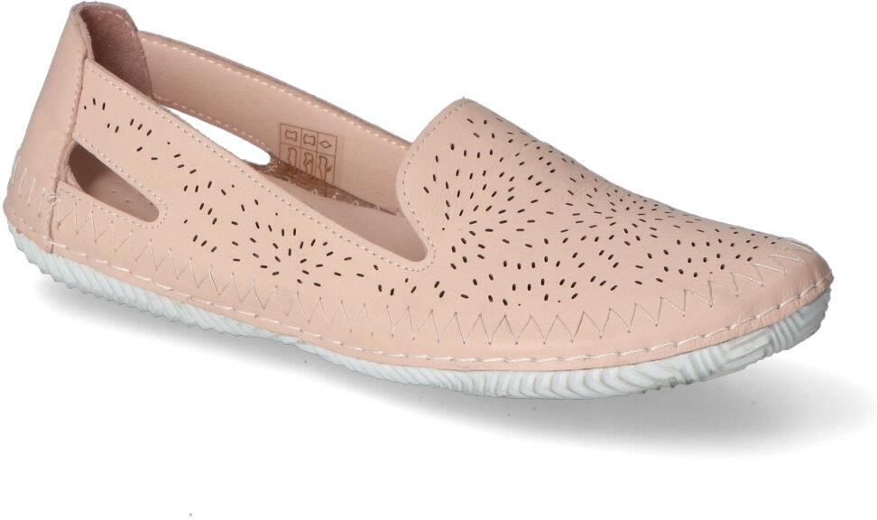 Półbuty Modo to doskonały wybór dla osób poszukujących połączenia komfortu i elegancji. Wykonane z wysokiej jakości skóry naturalnej, te półbuty charakteryzują się ażurowym wzorem, który zapewnia doskonałą wentylację, idealną na cieplejsze dni. Ich delikatny, różowy kolor sprawia, że są wszechstronnym elementem garderoby, który łatwo dopasować do różnych stylizacji.Model ten jest wyposażony w skórzaną wkładkę, co zapewnia wygodę noszenia przez cały dzień, nawet podczas długotrwałego użytkowania. Dzięki elastycznej podeszwie, półbuty Modo oferują doskonałą amortyzację oraz stabilność, co czyni je idealnym wyborem na długie spacery oraz codzienne aktywności.Dzięki swojemu uniwersalnemu wyglądowi, półbuty Modo świetnie komponują się zarówno z casualowymi, jak i bardziej eleganckimi outfitami. Można je zestawić z sukienkami, spodniami czy szortami, co czyni je wszechstronnym elementem każdej garderoby. Wybierz półbuty Modo, aby cieszyć się połączeniem stylu, komfortu i jakości na każdym kroku.