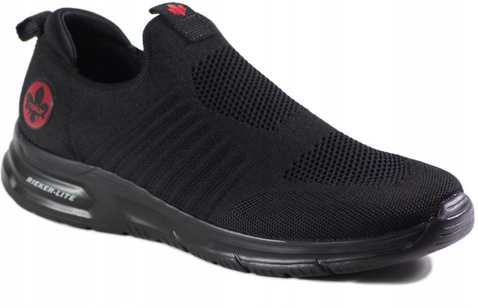 Półbuty Rieker B7365-00 Czarne Wsuwane Męskie Biała Piska
