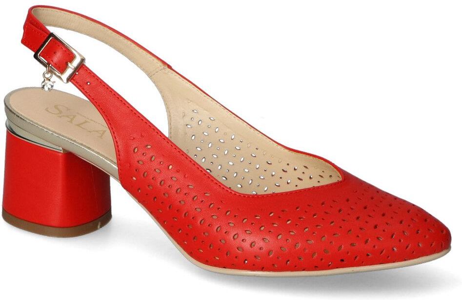 Eleganckie sandały renomowanej marki Sala: - cholewka wykonana została z wysokiej klasy skóry naturalnej licowej - wnętrze pokryte zostało skórą naturalną aby zapewnić komfort podczas użytkowania - wkładka wewnętrzna wykonana ze skóry naturalnej - sprzączka ułatwia zakładanie i dopasowanie obuwia - obcas o wys. 6,5 cm zapewnia odpowiednią stabilizację - intensywny czerwony kolor i modny fason tworzą zachwycający efekt!
