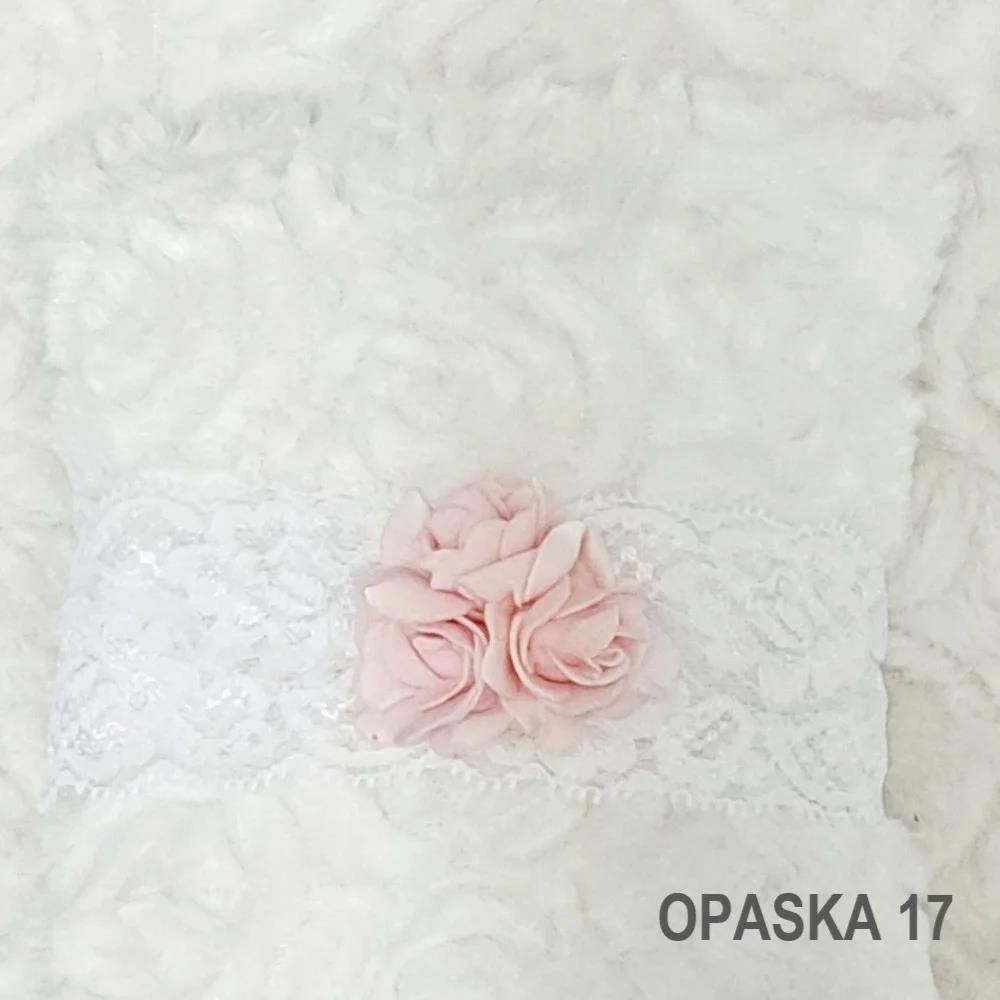 OPASKA DO CHRZTU dla dziewczynki biała OPASKA USZYTA PRZEZ NAS Z NAJLEPSZEJ JAKOŚCI BARDZO MIŁEJ I PRZYJEMNEJ W DOTYKU GUMOWANEJ, ELASTYCZNEJ KORONKI POLECANA NA LATO, PÓŹNĄ WIOSNĘ I WCZESNĄ JESIEŃ OPASKA ELEGANCKO WYKOŃCZONA I OZDOBIONA WDZIĘCZNYMI, PIĘKNYMI KOLOROWYMI KWIATKAMI. Tkanina poliester 100 %. Obwód głowy rozmiar 56 36 - 38 cm, rozmiar 62 38 - 40 cm, rozmiar 68 40 - 42 cm, rozmiar 74 42 - 44 cm, rozmiar 80 44 - 46 cm, rozmiar 86 46 - 48 cm DO OPASKI IDEALNIE PASUJE SUKIENKA, BOLERKO, SWETEREK,TOREBKA, PŁASZCZ I BUCIKI KTÓRE MOŻNA KUPIĆ ODDZIELNIE. WSZYSTKO WYKONANE Z WIELKĄ STARANNOŚCIĄ I DBAŁOŚCIĄ O SZCZEGÓŁY. PERFEKCYJNIE WYKOŃCZONE.