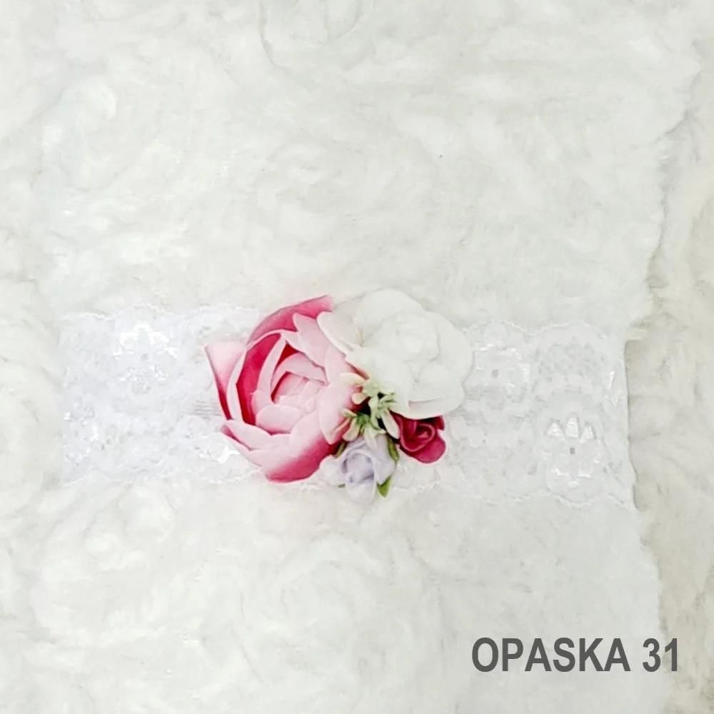 OPASKA DO CHRZTU dla dziewczynki biała OPASKA USZYTA PRZEZ NAS Z NAJLEPSZEJ JAKOŚCI BARDZO MIŁEJ I PRZYJEMNEJ W DOTYKU GUMOWANEJ ELASTYCZNEJ KORONKI POLECANA NA LATO, PÓŹNĄ WIOSNĘ I WCZESNĄ JESIEŃ OPASKA ELEGANCKO WYKOŃCZONA I OZDOBIONA WDZIĘCZNYMI, PIĘKNYMI KOLOROWYMI KWIATKAMI. Tkanina poliester 100 %. Obwód głowy rozmiar 56 36 - 38 cm, rozmiar 62 38 - 40 cm, rozmiar 68 40 - 42 cm, rozmiar 74 42 - 44 cm, rozmiar 80 44 - 46 cm, rozmiar 86 46 - 48 cm DO OPASKI IDEALNIE PASUJE SUKIENKA, BOLERKO, SWETEREK,TOREBKA, PŁASZCZ I BUCIKI KTÓRE MOŻNA KUPIĆ ODDZIELNIE. WSZYSTKO WYKONANE Z WIELKĄ STARANNOŚCIĄ I DBAŁOŚCIĄ O SZCZEGÓŁY. PERFEKCYJNIE WYKOŃCZONE.