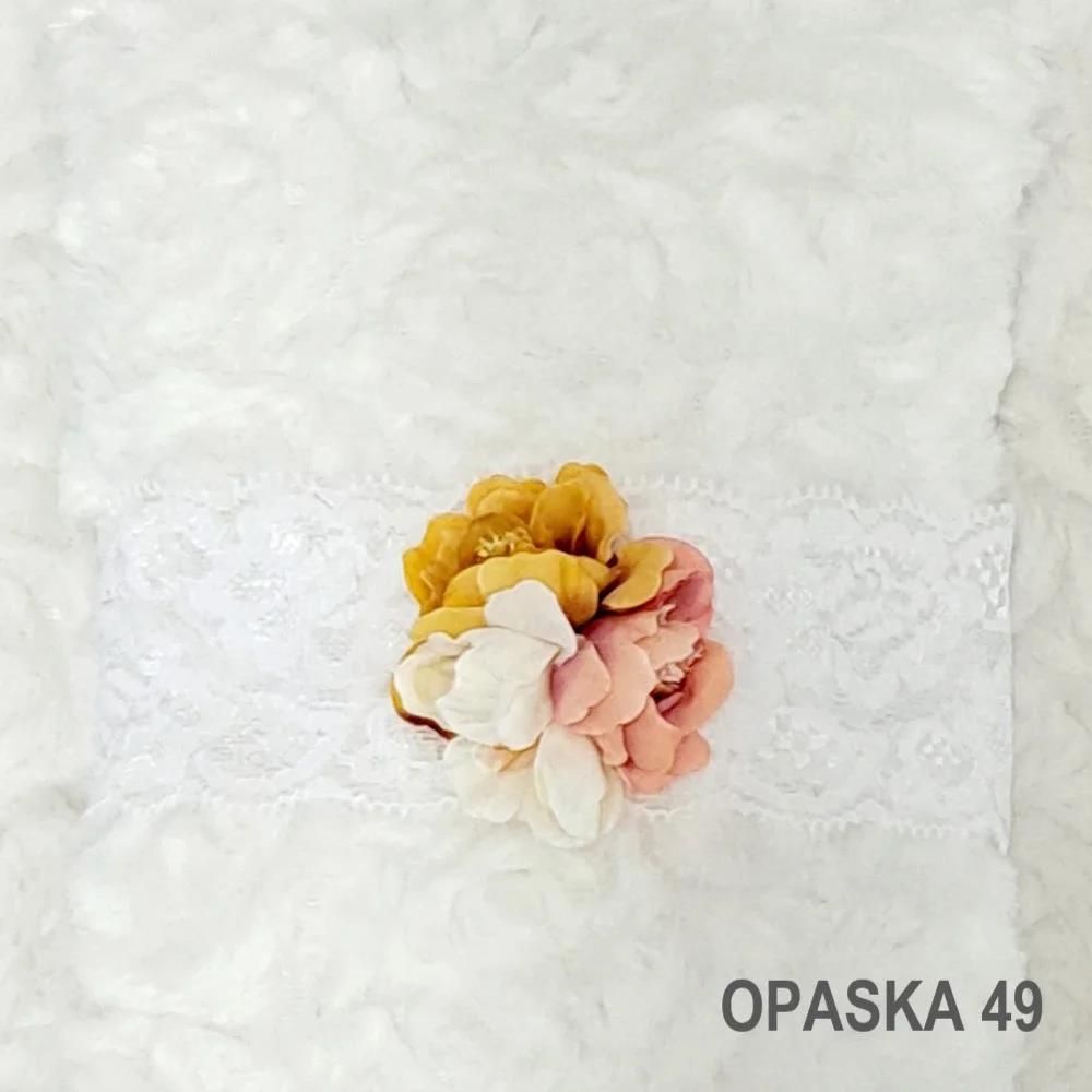 OPASKA DO CHRZTU dla dziewczynki biała OPASKA USZYTA PRZEZ NAS Z NAJLEPSZEJ JAKOŚCI BARDZO MIŁEJ I PRZYJEMNEJ W DOTYKU GUMOWANEJ ELASTYCZNEJ KORONKI POLECANA NA LATO, PÓŹNĄ WIOSNĘ I WCZESNĄ JESIEŃ OPASKA ELEGANCKO WYKOŃCZONA I OZDOBIONA WDZIĘCZNYMI, PIĘKNYMI KOLOROWYMI KWIATKAMI. Tkanina poliester 100 %. Obwód głowy rozmiar 56 36 - 38 cm, rozmiar 62 38 - 40 cm, rozmiar 68 40 - 42 cm, rozmiar 74 42 - 44 cm, rozmiar 80 44 - 46 cm, rozmiar 86 46 - 48 cm DO OPASKI IDEALNIE PASUJE SUKIENKA, BOLERKO, SWETEREK, TOREBKA, PŁASZCZ I BUCIKI KTÓRE MOŻNA KUPIĆ ODDZIELNIE. WSZYSTKO WYKONANE Z WIELKĄ STARANNOŚCIĄ I DBAŁOŚCIĄ O SZCZEGÓŁY. PERFEKCYJNIE WYKOŃCZONE.