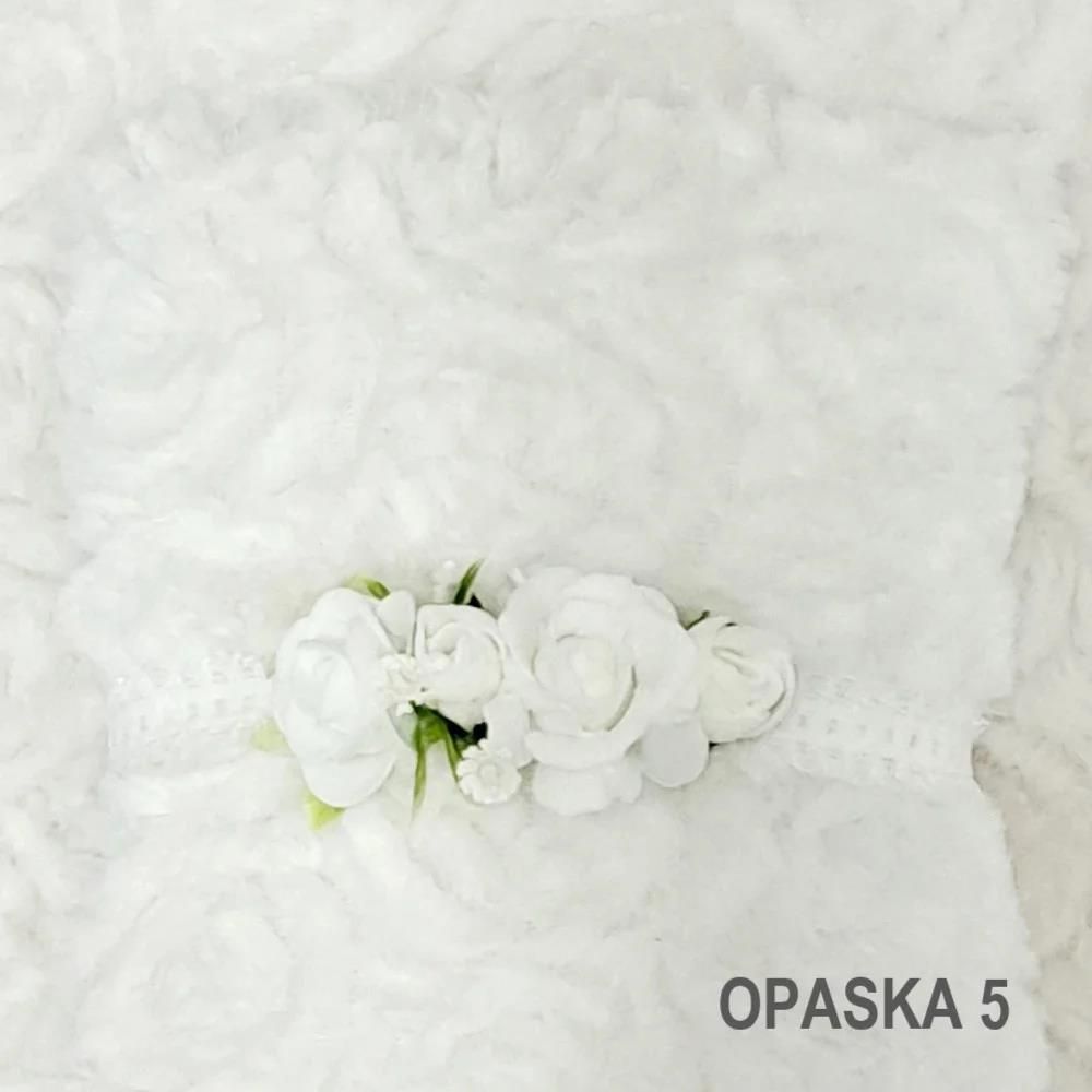 OPASKA DO CHRZTU dla dziewczynki biała OPASKA USZYTA PRZEZ NAS Z NAJLEPSZEJ JAKOŚCI BARDZO MIŁEJ I PRZYJEMNEJ W DOTYKU GUMOWANEJ, ELASTYCZNEJ KORONKI POLECANA NA LATO, PÓŹNĄ WIOSNĘ I WCZESNĄ JESIEŃ. OPASKA ELEGANCKO WYKOŃCZONA I OZDOBIONA WDZIĘCZNYMI, PIĘKNYMI KOLOROWYMI KWIATKAMI. Tkanina poliester 100 %. Obwód głowy rozmiar 56 36 - 38 cm, rozmiar 62 38 - 40 cm, rozmiar 68 40 - 42 cm, rozmiar 74 42 - 44 cm, rozmiar 80 44 - 46 cm, rozmiar 86 46 - 48 cm DO OPASKI IDEALNIE PASUJE SUKIENKA, BOLERKO, SWETEREK,TOREBKA, PŁASZCZ I BUCIKI KTÓRE MOŻNA KUPIĆ ODDZIELNIE. WSZYSTKO WYKONANE Z WIELKĄ STARANNOŚCIĄ I DBAŁOŚCIĄ O SZCZEGÓŁY. PERFEKCYJNIE WYKOŃCZONE.