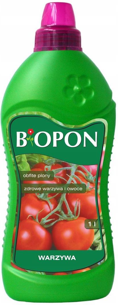 BIOPON nawóz do warzyw w płynie 1l Nowoczesny, wieloskładnikowy nawóz płynny o unikalnej kompozycji składników. Zawarty w nawozie potas wpływa na prawidłowe owocowanie i dojrzewanie. Odpowiednio dobrana zawartość azotu przyczynia się do optymalnego wzrostu i rozwoju, jednocześnie nie powodując nadmiernego gromadzenia się szkodliwych azotanów. AZOT 5%, FOSFOR 4,6%, POTAS 6% Nawozy mineralne dostarczają większe dawki łatwo przyswajalnych składników pokarmowych ,które są konieczne do prawidłowego wzrostu warzyw.stosowanie tych nawozów prowadzi do zwiększenia wielkości plonów oraz podwyższenia jakości produkowanych warzyw. Warzywa odznaczają się również zapotrzebowaniem na mikroelementy: bor magnez miedź cynk molibden Wieloskładnikowy nawóz Biopon do warzyw zawiera wszystkie potrzebne do ich prawidłowej uprawy składniki.