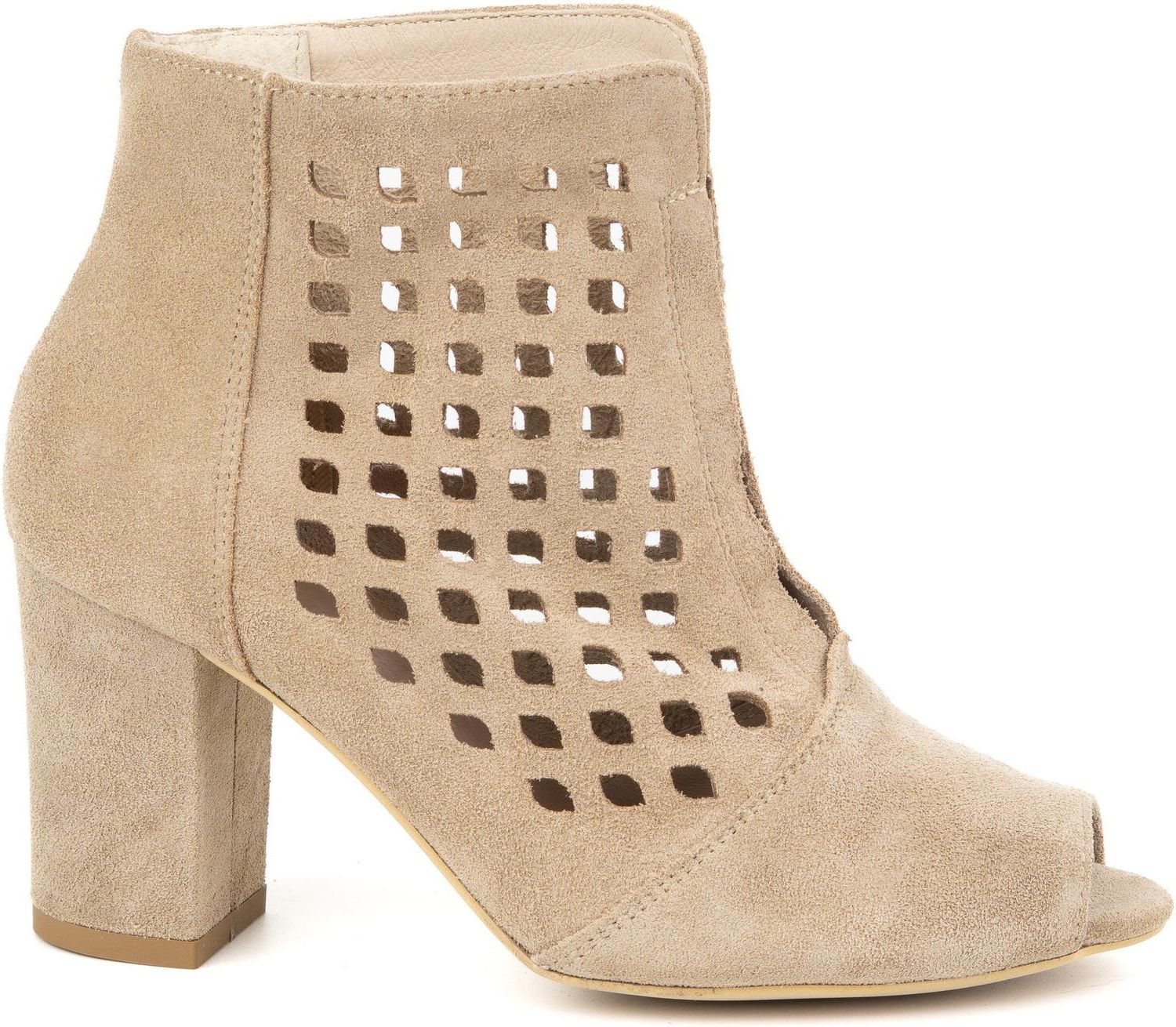 Botki damskie zamszowe ażurowe na słupku 1554EX beżowe Biała Podlaska