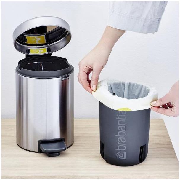 Pedałowy, niewielki kosz wyposażony w dopracowany mechanizm dla super lekkiego otwierania oraz bezgłośnego zamykania. Dzięki swoim rozmiarom zmieści się w niewielkiej toalecie lub łazience. Nowa seria koszy - newIcon to nowy wymiar codziennego piękna. Oprócz prozaicznej funkcji wypełnianej przez kosze na śmieci, kosze z serii newIcon to produkty przyjazne dla środowiska. Wykonane są one w 40 % z materiałów pochodzących z recyklingu, same natomiast po zaprzestaniu korzystania z nich mogą zostać poddane ponownemu przetworzeniu aż w 98 %. Dodatkowo firma Brabantia z każdego sprzedanego kosza newIcon przekazuje część dochodu na rzecz fundacji "The Ocean Cleanup", dbającej o czystość oceanów. Kosze na odpady marki Brabantia są wykonane z wysokiej jakości stali nierdzewnej, wiele z nich jest dodatkowo lakierowane metodą proszkową, aby nadać im koloru i oryginalnego wyglądu. Lakierowanie to odbywa się jeszcze przed ostatecznym zamontowaniem uchwytów, listewek ozdobnych itp. Zapobiega to ewentualnym odpryskom oraz korozji. Kosz ze stali stali matowej FPP (fingerprint proof - bez odcisków palców) ma 3 litry pojemności i posiada szczelną stalową pokrywę, która zapobiega przedostawaniu się zapachów na zewnątrz. Ulepszony mechanizm pedałowy ułatwia otwieranie kosza, a pokrywa opada bezszelestnie. Wewnątrz znajduje się plastikowy pojemnik, który swobodnie można wyjąć. Do kosza dołączony został zestaw startowy worków Brabantia PerfectFit Bags (rozmiar A), które są idealnie dopasowane do wielkości pojemnika. Na dnie kosza znajduje się plastikowa obręcz zapewniająca mu stabilność oraz chroniąca delikatne podłogi przed zarysowaniem. Wymiary kosza: Pojemność: 3 l Średnica: 16,8 cm Wysokość: 26,4 cm Głębokość: 23,5 cm Szerokość: 16,8 cm Wysoką jakość potwierdza 10-letnia gwarancja producenta! Główne zalety: wykonany z matowej stali FPP niezawodny, dopracowany mechanizm pedałowy szczelna, wolnoopadająca pokrywa kosza wewnętrzny plastikowy pojemnik ułatwia czyszczenie plastikowa obręcz w podstawie zapewnia stabilność i chroni podłogę przed zarysowaniem możliwość zakupu innych akcesoriów marki z tej samej linii kolorystycznej 10 lat gwarancji producenta