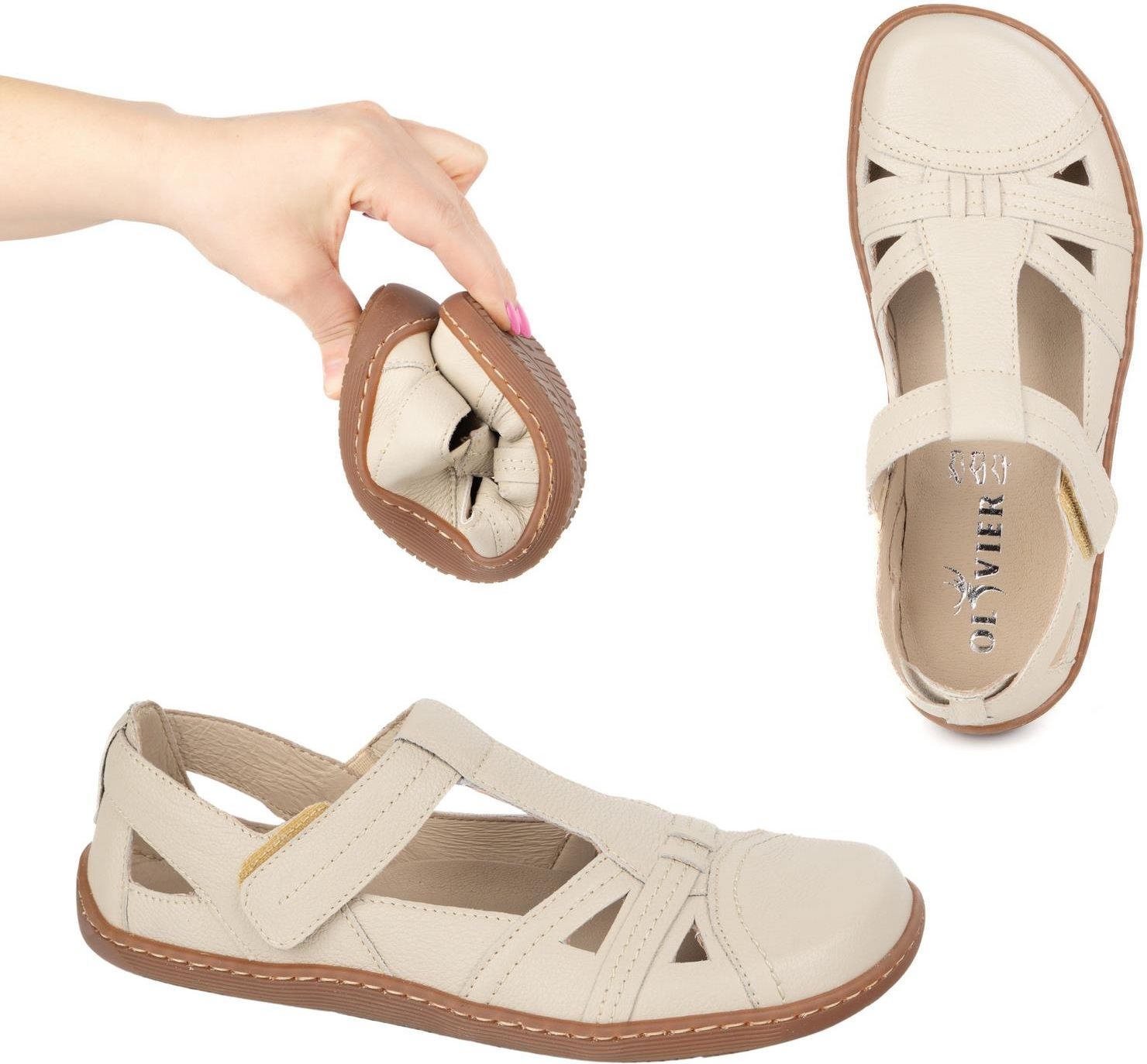 Buty damskie BAREFOOT Ultralekkie półsandały Olivier 1285 na rzep beżowe Biała Podlaska