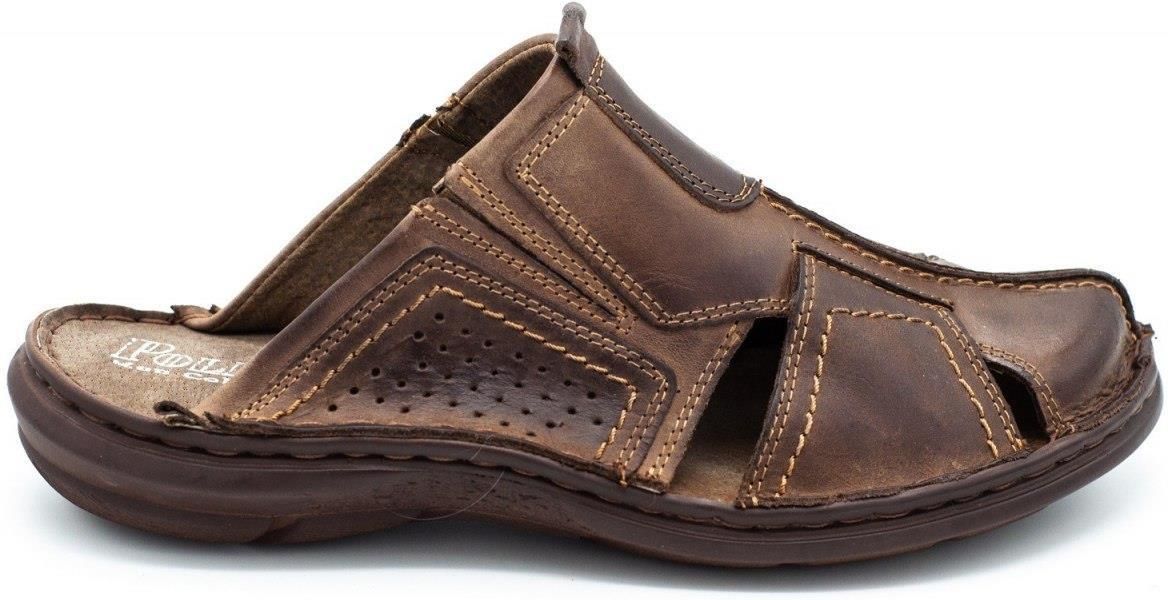 Klapki męskie skórzane 312 brązowe Biała Podlaska