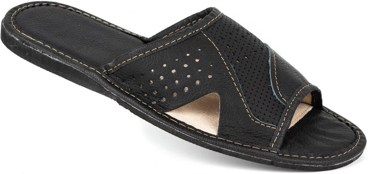 Klapki pantofle męskie skórzane kapcie góralskie 100 czarne Biała Podlaska