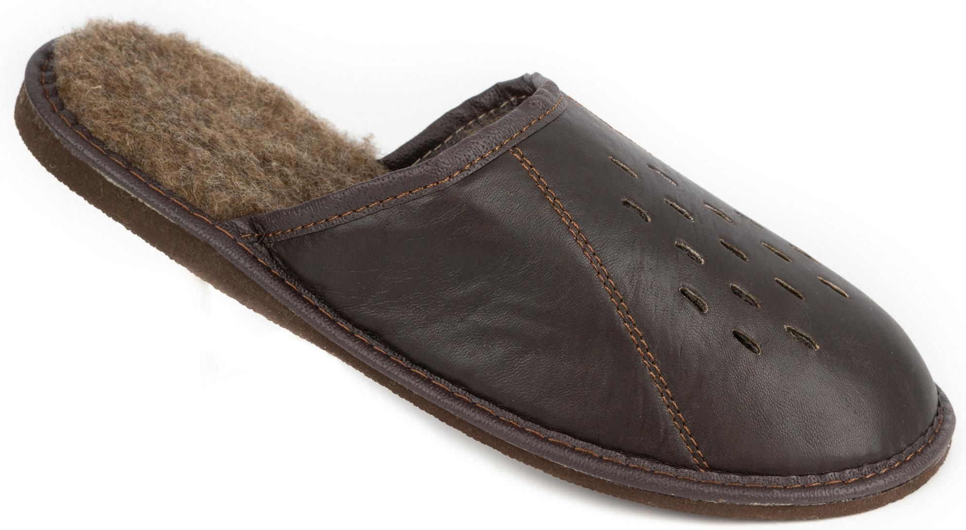 Klapki pantofle męskie skórzane kapcie góralskie ocieplane M74 brązowe Biała Podlaska