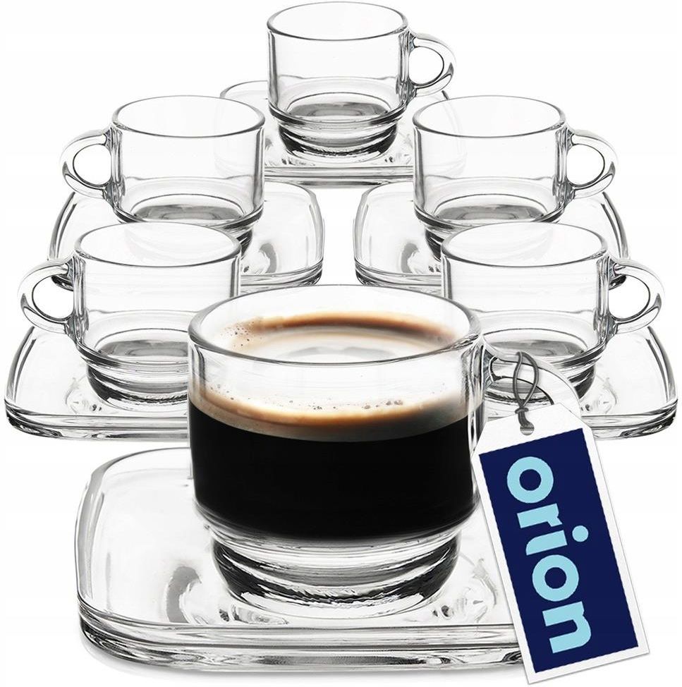 6x Filiżanki SZKLANE ze spodkiem do picia kawy espresso zestaw filiżanek Kod produktu: 129671 Najważniejsze informacje Zestaw 6 filiżanek ze spodkiem do kawy espresso - Zestaw sześciu filiżanek do serwowania kawy typu espresso. Pojemność maksymalna każdej filiżanki wynosi 75 ml, a ich wymiary to 7,5 x 5,7 x 5,5 cm, spodek ma kwadratowy kształt i wymiary 10 x 10 x 2 cm. Wykonane ze szkła - Wykonane z najwyższej jakości szkła w przezroczystym kolorze. Odpowiednio użytkowane posłużą długie lata. Odpowiedni rozmiar - Idealne na kawę typu espresso. Kawa w filiżance prezentuje się bardzo efektownie. Wygodny uchwyt - Filiżanki posiadają ergonomiczny uchwyt, który zapewnia komfortowe trzymanie i użytkowanie. Spodek do filiżanki idealnie komponuje się z filiżanką zapewniając praktyczną i elegancką podstawkę. Nadają się do zmywarki - Filiżanki i spodki wyczyścimy w łatwy sposób, gdyż nadają się do mycia w zmywarce do naczyń. Zestaw sześciu filiżanek ze spodkiem przeznaczonych do picia kawy espresso. Odpowiedni rozmiar filiżanek sprawia, że kawa prezentuje się w nich pięknie, a spodek dodaje im stylu. Dobrze komponują się z pozostałą zastawą na stole. Oryginalny produkt tureckiej marki LAV. Wyprodukowany zgodnie z europejskimi standardami. Materiał: szkło Długość: 10 cm Szerokość: 10 cm Wysokość: 6 cm Pojemność: 75 ml Waga (g): 1545 Kolor dominujący: przezroczysty Orion - tworzymy Twój dom Orion to marka, która ma korzenie w Czechach i od momentu swojego założenia w 1992 roku, stała się synonimem jakości, innowacji i dbałości o potrzeby klientów. Nasza firma jest dumna z wieloletniej tradycji i zaangażowania w dostarczanie produktów do domu, kuchni, łazienki i ogrodu, które spełniają najwyższe standardy jakości. Oferta marki Orion to bogactwo kilku tysięcy rodzajów produktów, które zapewniają rozwiązania na miarę współczesnych potrzeb. Bez względu na to, czy szukasz funkcjonalnych akcesoriów do kuchni, eleganckich elementów wyposażenia domu, czy łazienki - Orion ma to, czego potrzebujesz. Priorytet to zadowolenie Klienta. Dlatego starannie dobieramy naszą ofertę produktów, dbając o to, aby każdy produkt spełniał oczekiwania naszych Klientów. Orion to marka, która łączy jakość, elegancję i funkcjonalność w jednym. Nasze produkty są nie tylko praktyczne, ale także estetycznie wykonane, co pozwala Ci cieszyć się życiem w pięknie urządzonym otoczeniu.