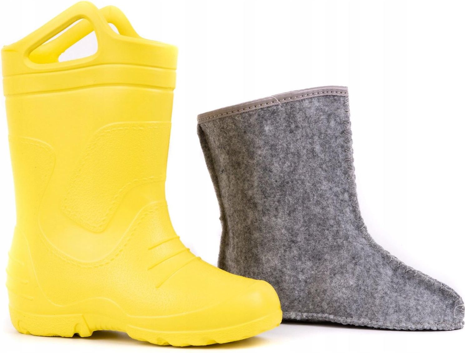 Lekkie Kalosze dziecięce piankowe Stomilek 51051 żółte Obuwie z tworzywa EVA przeznaczone jest dla dzieci do codziennego użytku, zabawy i rekreacji. Kroki w kolorach dzieciństwa - Nasze lekkie i wytrzymałe obuwie z tworzywa EVA zostało stworzone specjalnie dla Twojej pociechy, by towarzyszyć im w pełni energicznych przygodach, niezależnie od pory dnia. Zabawa, rekreacja czy codzienne eskapady - nasze buty zapewnią nie tylko maksymalny komfort, ale także radość kroku w każdym kolorze tęczy! Daj dziecku wolność do odkrywania świata, jednocześnie mając pewność, że ich stopki są odpowiednio chronione i wspierane. Skocz w wir przygody z naszym obuwiem z tworzywa EVA - bo dzieciństwo to najlepszy moment na wielkie kroki w przyszłość! Kalosze + wkład ocieplający gratis! Obuwie chroni przed zimnem, wilgocią i zapewnia pełna izolacje od podłoża. ✅Swoboda użytkowania w każdych warunkach atmosferycznych (nawet do -30°C), wodoodporność; ✅Kalosze wykonane z tworzywa EVA super lekkie (około 0,3kg), gwarantujące dodatkowo wysoki komfort użytkowania. ✅Obuwie posiada odporność na poślizg SRC. ✅Wymienna skarpeta zapewniająca utrzymanie temperatury. Produkt polski! Obuwie lekkie Odporność na poślizg (SRC) Wymienny wkład ocieplający Izolacja od zimna (-30°C) Gatunek: I Kolor: Żółty Materiał: Tworzywo sztuczne Podeszwa: Wysokogatunkowe tworzywo Typ: Casual Tęgość: G Zapięcie: Wsuwane Tabela rozmiarów: Rozmiar 20 - Długość wkładki: 12,7 cm Rozmiar 21 - Długość wkładki: 12,7 cm Rozmiar 22 - Długość wkładki: 14,1 cm Rozmiar 23 - Długość wkładki: 14,1 cm Rozmiar 24 - Długość wkładki: 15,3 cm Rozmiar 25 - Długość wkładki: 15,3 cm Rozmiar 26 - Długość wkładki: 16,5 cm Rozmiar 27 - Długość wkładki: 16,5 cm Rozmiar 28 - Długość wkładki: 17,9 cm Rozmiar 29 - Długość wkładki: 17,9 cm Rozmiar 30 - Długość wkładki: 19,2 cm Rozmiar 31 - Długość wkładki: 19,2 cm Rozmiar 32 - Długość wkładki: 20,5 cm Rozmiar 33 - Długość wkładki: 20,5 cm Rozmiar 34 - Długość wkładki: 21,7 cm Rozmiar 35 - Długość wkładki: 21,7 cm