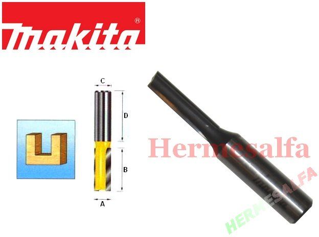 Oferujemy produkt oryginalny i fabrycznie nowy: FREz DO DREWNA PROSTY 12mm MAKITA D-10176 Oryginalny frez do drewna renomowanej firmy Makita. Frez prosty (2 rowki) HM/CT z ostrzami z węglików spiekanych. Dane techniczne: A - szerokość ostrza 8 mm B - długość ostrza 30 mm C - średnica trzpienia 12 mm D - długość trzpienia 32 mm