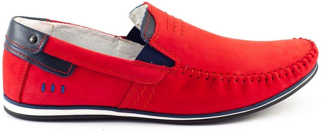 Mokasyny męskie skórzane 876 czerwone Czerwony Biała Podlaska