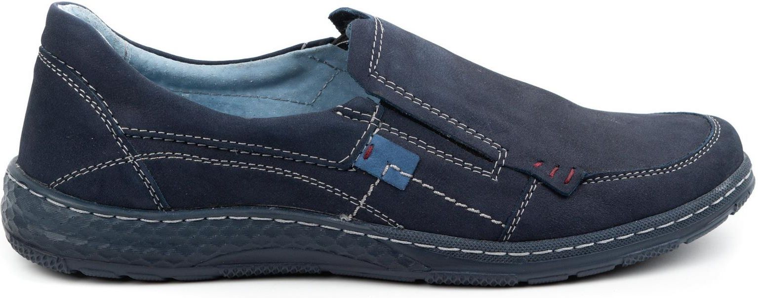 Mokasyny męskie skórzane zamsz nubuk 943MA granatowe wsuwane Jeśli szukasz butów, które łączą w sobie komfort, styl i jakość, to męskie skórzane mokasyny 943MA od firmy OLIVIER są dla Ciebie. Wykonane z wysokiej jakości skóry, te buty zapewniają nie tylko wyjątkowy wygląd, ale także trwałość na długie lata. Ich wsuwana konstrukcja z gumkami po boku cholewki sprawia, że zakładanie ich jest szybkie i proste, a jednocześnie gwarantuje idealne dopasowanie. Dodatkowo, przeszycia po bokach dodają im charakterystycznego akcentu. Mokasyny OLIVIER to niezastąpiony wybór dla mężczyzn, którzy pragną wyglądać elegancko i czuć się komfortowo. Gatunek: I Kolor: Granat Materiał wewnętrzny: Skóra naturalna Materiał: Skóra naturalna Podeszwa: Wysokogatunkowe tworzywo Sposób wykonania: Szyte, Klejone Typ: Casual Tęgość: G Zapięcie: Wsuwane Konserwacja: Produkty do konserwacji zamszu i nubuku, renowatory Nosek: okrągły Tabela rozmiarów Rozmiar 40 - Długość wkładki: 26,5 cm Rozmiar 41 - Długość wkładki: 27 cm Rozmiar 42 - Długość wkładki: 27,5 cm Rozmiar 43 - Długość wkładki: 28,5 cm Rozmiar 44 - Długość wkładki: 29 cm Rozmiar 45 - Długość wkładki: 29,5 cm