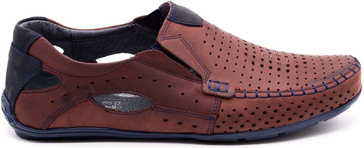 Buty męskie mokasyny skóra 901 lato bordowe Mokasyny męskie skórzane to obuwie, bez którego trudno wyobrazić sobie stylizację modnego mężczyzny w cieplejszej części roku. Pasują do lżejszych spodni, na przykład lnianych. Ponieważ najczęściej nosi się je założone bezpośrednio na gołe stopy, ważne jest zwrócenie uwagi na wysoką jakość wykonania. Prezentowane mokasyny męskie są przygotowane w całości ze skóry. Materiał zewnętrzny to skóra naturalna, natomiast w środku znajduje się także skórzana wkładka. Dzięki temu buty zapewniają idealną cyrkulację powietrza i zapobiegają przepacania się stóp nawet przy wysokich temperaturach na zewnątrz. Mokasyny męskie są wsuwane, dlatego zakłada się je bardzo szybko. Delikatna guma po bokach ułatwia ich ubieranie na stopę, a do tego sprawia, że buty świetnie się dopasowują. Lekka, a przy tym elastyczna podeszwa podnosi komfort codziennego użytkowania. Mokasyny męskie z pewnością staną się ulubionym obuwiem codziennym. Gatunek: I Kolor: Bordo Materiał wewnętrzny: Skóra naturalna Materiał zewnętrzny: Skóra naturalna Podeszwa: Wysokogatunkowe tworzywo Sposób wykonania: Klejone Typ: Casual Tęgość: G Zapięcie: Wsuwane Konserwacja: Produkty do konserwacji zamszu i nubuku, renowatory Tabela rozmiarów: Rozmiar 39 - wkładka: 25,5 cm Rozmiar 40 - wkładka: 26 cm Rozmiar 41 - wkładka: 26,5 cm Rozmiar 42 - wkładka: 27,5 cm Rozmiar 43 - wkładka: 28,5 cm Rozmiar 44 - wkładka: 29 cm Rozmiar 45 - wkładka: 29,5 cm Rozmiar 46 - wkładka: 30 cm Rozmiar 47 - wkładka: 31 cm Rozmiar 48 - wkładka: 31,5 cm Rozmiar 49 - wkładka: 32 cm