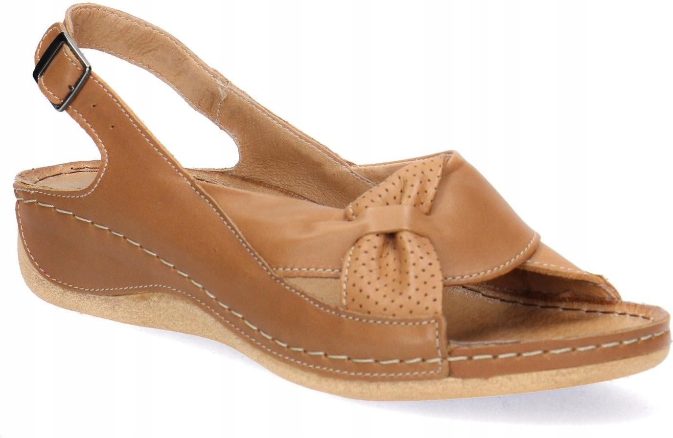 Skórzane sandały damskie z klamerką pollonus rudy 5-0686-040 37 Biała Podlaska