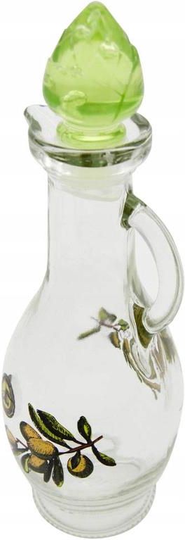 Karafka szklana na Płyny/Oliwę - 750 ml Karafka szklana na płyny, oliwka - 750 ml. Wykonana z wysokiej jakości szkła. Idealna do przechowywania oliwy, oleju, octu czy innych płynnych przypraw. Piękny oliwkowy wzór przyciąga uwagę. Wyposażona w wygodny uchwyt ułatwiający przenoszenie. Góra zakończona wąskim lejkiem z dziupkiem ułatwia przelewanie. Dodatkowy atut to korek z tworzywa sztucznego z silikonem, gwarantujący szczelne zamknięcie. Produkt niezastąpiony w kuchni. Ostrzeżenie: Szkła nie wolno poddawać gwałtownym zmianom temperatury - ryzyko pęknięcia na skutek naprężeń (szkło niehartowane). Podstawowe dane Materiał: Szkło Kolor: Bezbarwny Wzór: Oliwki Pojemność: 750 ml Wysokość: 31 cm Średnica podstawy: 7 cm Średnica otworu: 3,5 cm Przeznaczenie: do użytku domowego/ gastronomii Marka : Tragar Cechy produktu Służy do bezpiecznego i higienicznego przechowywania płynów Przechowywane w butelce oliwa czy ocet zachowają najwyższej jakości smak Praktyczna pojemność służy do kontroli zużytej ilości oliwy czy octu do posiłków Szczelne zamknięcie w postaci korka zapobiega przedostaniu się do wnętrza zanieczyszczeń Dozownik ze szkła jest wielorazowy, ekonomiczny i łatwy w czyszczeniu Karafka posiada wygodny uchwyt i lejek Ciekawy element dekoracyjny kuchni i jadalni Galeria produktu