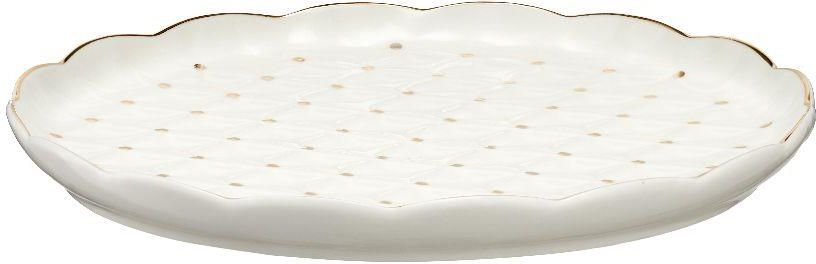 Talerzyk deserowy 19 cm porcelanowy ALEXIA Elegancki talerzyk deserowy, wykonany z porcelany typu NBC w mlecznym odcieniu. Powierzchnię talerzyka zdobi wzór reliefowy dekorowany złotymi kropkami. Szyku i uroku dodaje talerzykom efektowny rant ręcznie malowany złotem. Talerzyk deserowy o średnicy 19 cm to część kolekcji porcelany Alexia, która powstała z myślą o domowych spotkaniach przy herbacie lub kawie. Do talerzyków możesz dobrać talerz do ciasta, filiżanki lub kubki z tej samej serii. Talerzyki deserowe i inne elementy kolekcji Alexia będą doskonałą oprawą rodzinnych uroczystości lub eleganckim upominkiem dla kogoś wyjątkowego. materiał: porcelana typu NBC kolor: biały malowany ręcznie złotem średnica 19 cm do mycia ręcznego Galeria
