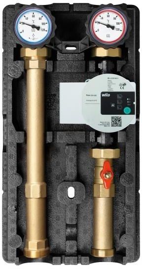 Grupa pompowa PrimoTherm 180-1 DN25 WP, pompa Wilo Para CHARAKTERYSTYKA PRODUKTU: Wyposażona w niezbędne komponenty: trzy termometry do pomiaru temperatury, trzy zawory odcinające, izolacja termiczna Zainstalowana pompa Wilo Para MS/8-75/SC Temperatura znamionowa 45°C ZASTOSOWANIE: Stosowana w instalacjach grzewczych Montowane na powrocie do źródła ciepła Przeznaczona do zabezpieczania kotła przed zbyt niską temperaturą powrotu, kondensacją wilgoci na płaszczu wodnym i negatywnymi procesami zanieczyszczenia paleniska przez smoły i sadze DANE TECHNICZNE: Maksymalne ciśnienie: 6 bar Przyłącza: 3x GW G1" Zasilanie: 230 V AC Maksymalna temperatura medium: 100°C