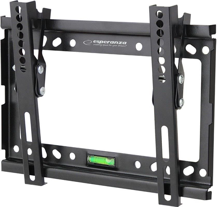 ESPERANZA UCHWYT DO TV 14"-50" CASTOR ESPERANZA UCHWYT DO TV 14"-50" CASTOR Metalowy, mocny uchwyt naścienny do telewizorów w rozmiarze od 14” do 50”. Łatwy w montażu. Zgodny ze standardem VESA 75x75mm – 200x200mm. Posiada w zestawie małą poziomicę ułatwiająca wypoziomowanie uchwytu. Uchwyt posiada możliwość regulacji nachylenia. Rozmiar ekranu: 14”-50" Max. obciążenie uchwytu: 25 kg VESA min-max standard: 75x75-200x200 [mm] Odległość telewizora od ściany: 24mm Regulacja nachylenia do 15o Montaż: do ściany Waga uchwytu: 460g W zestawie akcesoria do montażu i poziomica 5901299958940 ERW010