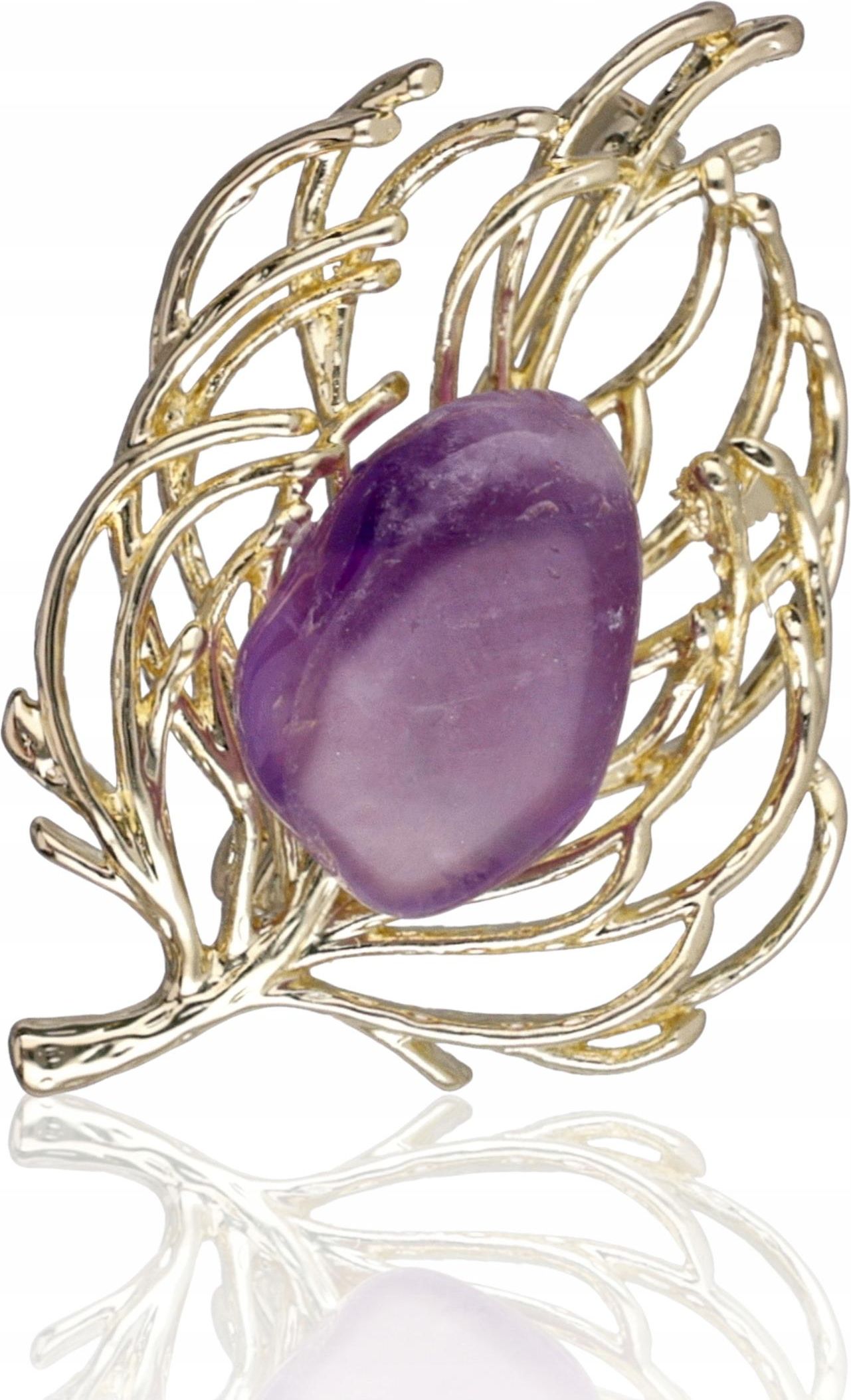Broszka z kamieniem ametystem fioletowa złota motyw gałązki ozdobna Białobrzegi