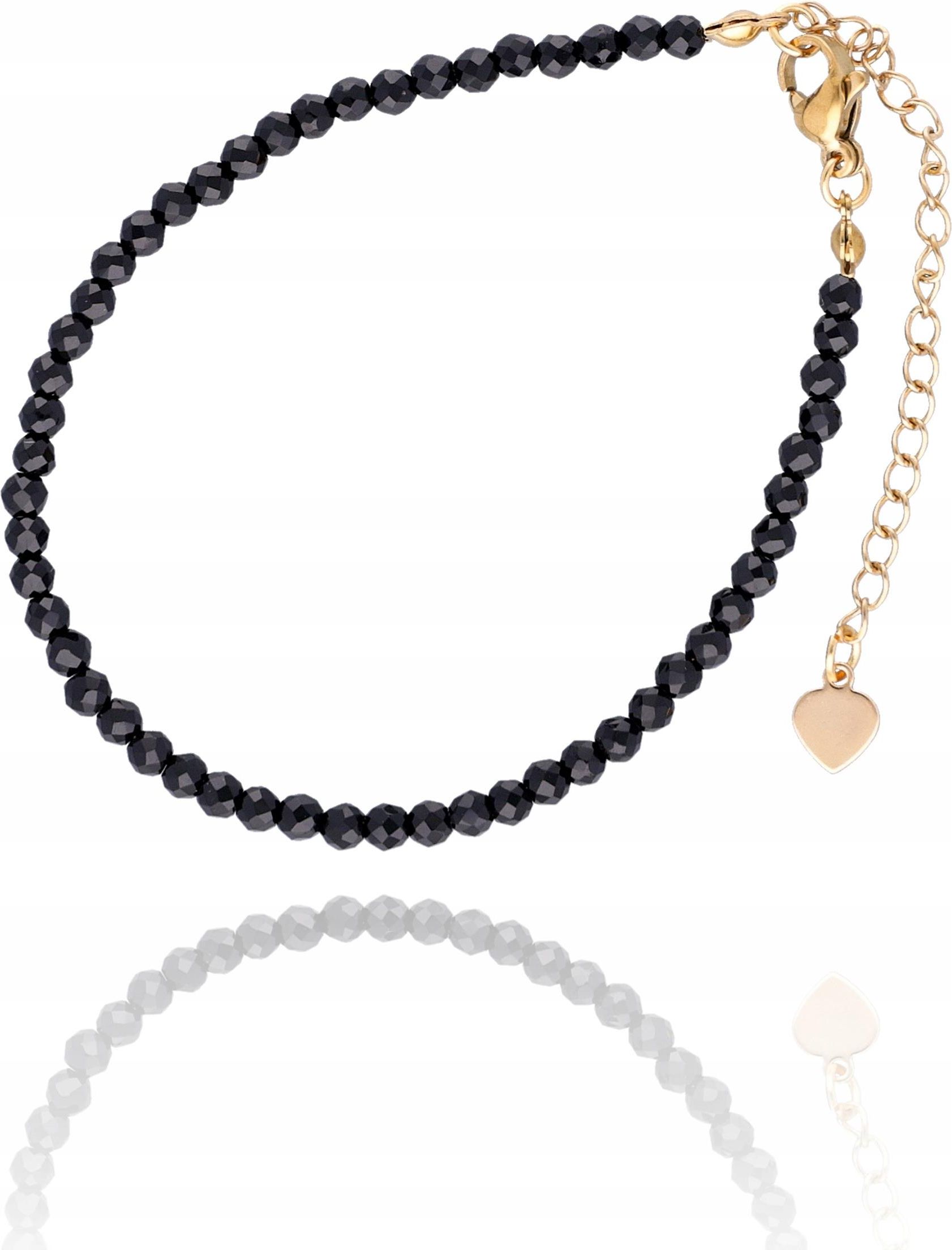 Bransoletka z Obsydianem Delikatna Bransoletka z Kamieniami Naturalnymi Bransoletka z Kamieniem Obsydian Specyfikacja Kamień: obsydian Długość: około 17 cm + 5 cm regulacji Koralik: 3-4 mm Kolor: złoty, czarny Zapięcie: klasyczne, z regulacją Materiał: kamień, stal szlachetna pozłacana Każda bransoletka jest unikatowa. Zdjęcia przedstawiają przykładowe bransoletki. Bransoletka wysyłana losowo. Opakowanie: ozdobna tekturka biżuteryjna. Czarna Bransoletka z Kamieniami Cechy Kamienie naturalne: fasetowane kamienie naturalne. Kolorystyka: uniwersalna, elegancka kolorystyka - klasyczna czerń i złoto. Zapięcie: klasyczne zapięcie typu karabińczyk w kolorze złotym. Regulacja długości: łańcuszek przedłużający z zawieszką w kształcie serca. Styl: delikatny, minimalistyczny, kobiecy. Zalety Uniwersalna: pasuje do różnych stylizacji – zarówno codziennych, jak i eleganckich. Właściwości kamienia: obsydian jest ceniony za swoje właściwości energetyczne i piękny kolor. Regulowana długość: możliwość dopasowania do różnych rozmiarów nadgarstka. Zawieszka serce: dodaje uroku i subtelnego, romantycznego akcentu. Fasetowane kamienie: efektownie odbijają światło, co nadaje trójwymiarowości i blasku. Bransoletka z Kamieniem Naturalnym Obsydian Kamień ochrony, transformacji. Głęboka, czarna barwa symbolizuje tajemniczość, siłę i duchową ochronę. Wspiera proces oczyszczania emocjonalnego, pomagając uwolnić traumy i blokady energetyczne. Działa jako katalizator głębokiej transformacji, prowadząc do duchowego wzrostu i wewnętrznej siły. Wspomaga również uziemienie, dając poczucie stabilności i bezpieczeństwa, szczególnie w chwilach chaosu lub zmiany. Jego energia jest intensywna i bezkompromisowa, co czyni go idealnym kamieniem dla osób pragnących wejść na ścieżkę głębokiej transformacji i duchowego oczyszczenia.