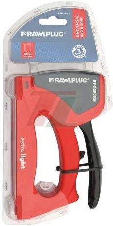 RAWLPLUG Zszywacz lekki RL 53, RT-KGR0033 Charakterystyka produktu: Korpus z ABS lekka obudowa odporna na uderzenia. Składana rękojeść ułatwia przechowywanie oraz transport. Dolna ładownica z blokadą magazynka pozwala na szybkie ładowanie zszywek. Podgląd zawartości zszywek zapewnia możliwość szybkiej kontroli zszywek w magazynku. Płaska sprężyna przedłuża żywotność oraz redukuje siłę odrzutu. Opakowanie typu "Try me " ułatwia swobodny dostęp do wszystkich funkcji narzędzia. Dwustopniowa regulacja siły bicia daje możliwość dostosowania siły wbicia do rodzaju materiału. Dane techniczne: Zakres zszywek: 6-14mm Materiał korpusu: ABS Rękojeść: składana Nr katalogowy: RT-KGR0033