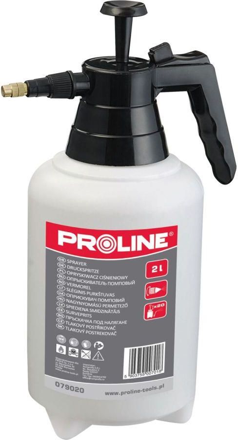 Opryskiwacz ciśnieniowy 2.0L Proline 079020 Opryskiwacz ciśnieniowy Proline 079020 to kompaktowe i wygodne narzędzie do podlewania, pielęgnacji roślin oraz domowych zastosowań. Wyposażony w zbiornik o pojemności 2.0L, wykonany z odpornego na uderzenia tworzywa sztucznego, gwarantuje długą żywotność i niezawodne działanie. Regulowana miedziana dysza umożliwia dostosowanie strumienia do różnych potrzeb, a duży skok tłoka (25 cm) zapewnia szybkie i efektywne pompowanie. Zalety produktu Wygodne użytkowanie – ręczny opryskiwacz o kompaktowej pojemności 2.0L jest lekki i poręczny. Trwałość i wytrzymałość – wykonany z odpornego na uderzenia tworzywa sztucznego, zapewnia długą żywotność.Precyzyjne opryskiwanie – regulowana miedziana dysza pozwala na dostosowanie szerokości i intensywności strumienia. Szybkie pompowanie – duży skok tłoka (25 cm) gwarantuje sprawne wytworzenie ciśnienia. Bezpieczne i wygodne napełnianie – kielich na wlewie zapobiega rozlewaniu płynów podczas uzupełniania. Czytelna miarka pojemności – skala w litrach (L) i uncjach (Oz) ułatwia kontrolę ilości płynu. Stabilna konstrukcja – solidna podstawa zapewnia bezpieczeństwo i wygodę podczas użytkowania. Specyfikacja produktu Pojemność: 2.0 L Długość tłoka: 25 cm Regulowana dysza: Tak, miedziana Materiał zbiornika: Tworzywo sztuczne odporne na uderzenia Podstawa stabilizująca: Tak Skala pojemności: L i Oz Opryskiwacz Proline 079020 to trwałe, wygodne i funkcjonalne narzędzie, idealne do prac ogrodniczych i domowych. Dzięki wytrzymałej konstrukcji, regulowanej dyszy i ergonomicznej budowie, zapewnia komfort i precyzję użytkowania
