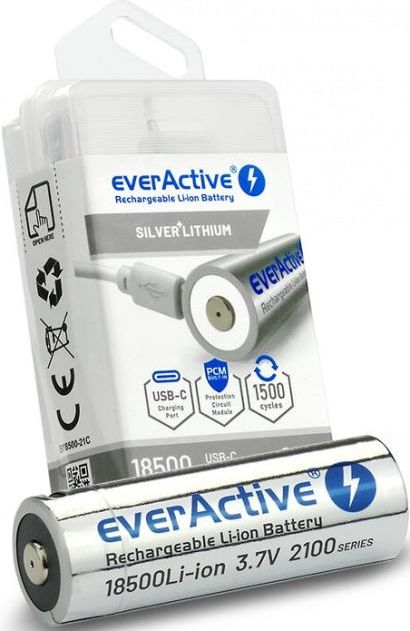 Akumulator everActive 18500 3,7V Li-ion 2100mAh USB-C z zabezpieczeniem BOX (EV18500-21M) Białogard