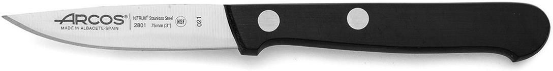 UNIVERSAL to seria solidnych klasycznych uniwersalnych noży do wielu zastosowań. Wyprodukowane w Hiszpanii. Ostrza wykonane z innowacyjnej martenzytycznej stali nierdzewnej NITRUM® o podwyższonej twardości oraz odporności na korozję. Kute z jednego kawałka stali. Doskonale wyważone uchwyty wykonane z POM – bezpośrednio połączone z trzpieniem za pomocą nitów wykonanych ze stali nierdzewnej. Na uchwytach powłoka BACTIPROOF SILVER® pozwalającą zredukować do minimum gromadzenie się bakterii. Zwiększona odporność na wysoką temperaturę. Twardość około 55HRC. Przystosowane do mycia w zmywarce lecz rekomendowane jest mycie ręczne. Z certyfikatem NSFNóż do obierania seria UNIVERSAL firmy Arcos jest wykonany z innowacyjnej opatentowanej stali nierdzewnej dzięki której zawdzięcza swoją wysoką twardość i odporność na korozję. Cechuje się również wysokim komfortem użytkowania – jego uchwyt jest doskonale wyważony.