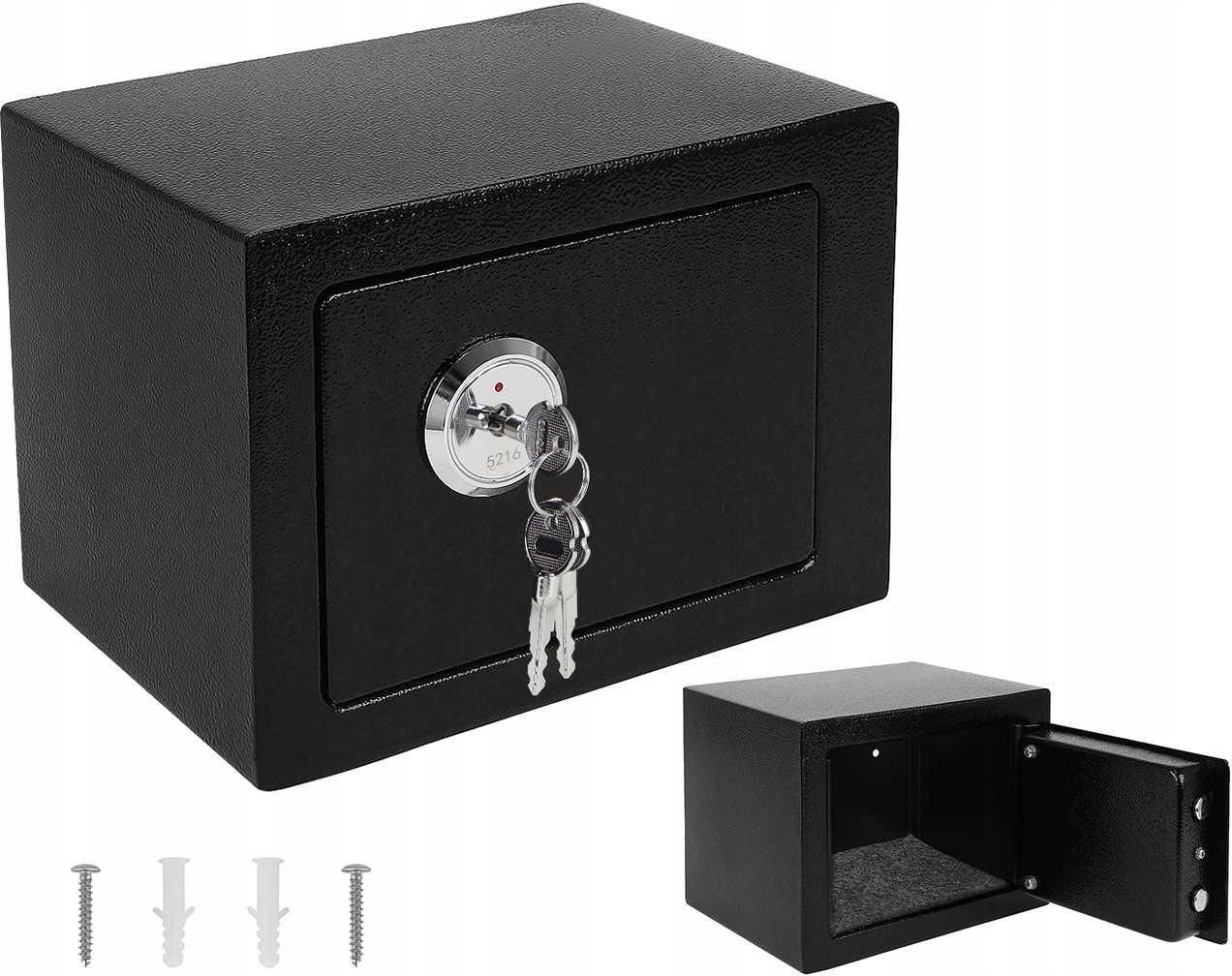 Stalowy sejf na kluczyk S8800 Sejf to doskonałe Rozwiązanie dla przechowywania cennych, wartościowych przedmiotów we własnym domu, biurze lub w innym miejscu, gdzie istotne jest zabezpieczenie kosztowności oraz dokumentów. Sejf sprawdzi się także w hotelowym pokoju, gdzie zapewni spokój przebywających w nim gości, którzy będą mogli bezpiecznie zdeponować w nim nie tylko środki płatności, ale również dokumenty podróżne. Specyfikacja kolor: czarny materiał: stal wymiary (dł/szer/wys): 17/23/17cm waga: 2,7kg waga z opakowaniem: 2,9kg W zestawie sejf 3 kluczyki 2 kołki montażowe wraz ze śrubkami Solidnie wykonanie Gwarantuje, że nikt poza nami nie będzie miał dostępu do zawartości. Sejf jest trwały i odporny na uszkodzenia oraz stosunkowo ciężki. W związku z tym maleje ryzyko kradzieży całej skrytki i wyniesienia jej niepostrzeżenie na zewnątrz obiektu bądź pomieszczenia, w którym się znajduje. Zamknięcie drzwi poprzez grube rygle skutecznie spełnia dodatkową rolę zabezpieczającą, uniemożliwiając ich sforsowanie. Sejf Zapewnia możliwość trzymania wszelkich ważnych rzeczy, m.in. pieniędzy, biżuterii, dokumentów bądź małego sprzętu elektronicznego, a także nośników pamięci z wrażliwymi danymi. Wymiary przestrzeni wewnątrz sejfu sprawiają, że zmieszczą się w nim arkusze o maksymalnym rozmiarze A5 oraz wszelkiego rodzaju drobne przedmioty o dużej wartości. Dno sejfu Można wyłożyć znajdującą się w zestawie, materiałową podkładką. Uchroni ona biżuterię bądź inne kosztowności przed przypadkowym uszkodzeniem lub zarysowaniami. Sejf otwierany jest przy użyciu klucza, do zestawu dołączono komplet 3. Pozwoli to na odłożenie jednego kluczyka jako zapasowego, a pozostałe do użytkowania dla dwóch osób. W zestawie dołączone są także kołki montażowe, które umożliwiają zamocowanie sejfu do ściany, bądź szafy przez znajdujące się w tylnej części otwory. Inwestycja W produkt zaprojektowany z myślą o tym, aby zmniejszyć ryzyko kradzieży wartościowych przedmiotów bądź tajnych dokumentów, może okazać się kluczowa nie tylko w życiu prywatnym, ale także służbowym. Będzie również oznaką wysokiej jakości obsługi gości hotelowych. Posiadamy również inne rodzaje oraz wymiary sejfów